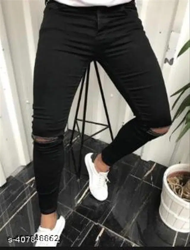 Name: BLACK KNEE CUT JEANS MAN