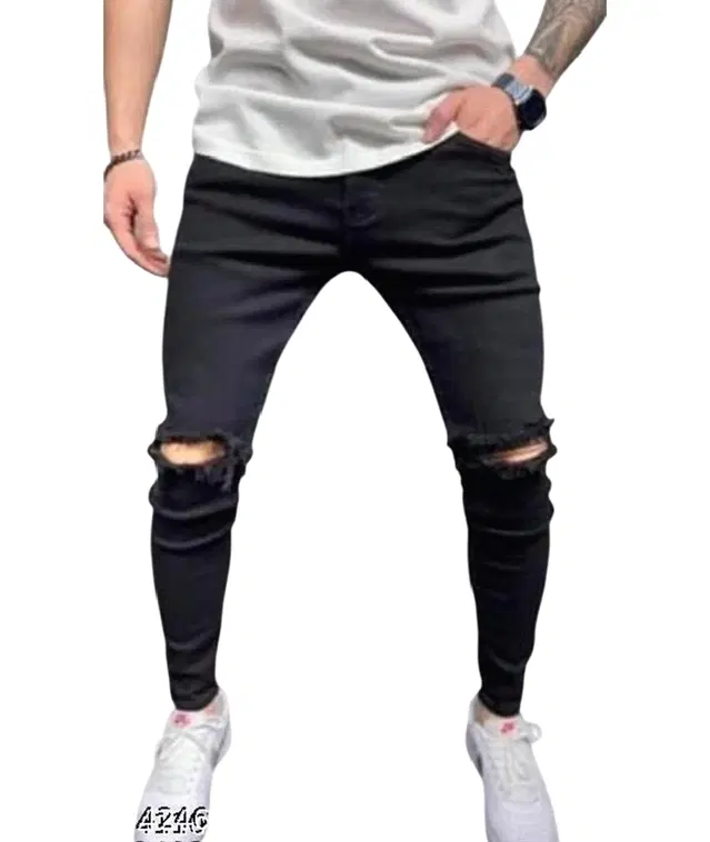 Name: BLACK KNEE CUT JEANS MAN