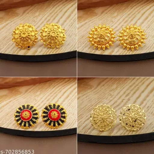 Designer Floral Gold Finish Stud Earrings For Women @ ₹211 - Buy Online at CityMall
