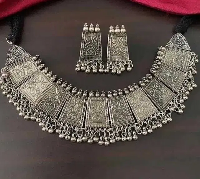 Designer Necklace with Earrings Set for Women & Girls, Set of 1 (Silver) - Buy Online at CityMall