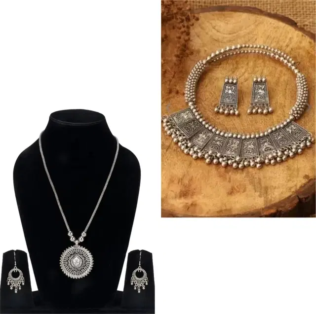 Designer Necklace with Earrings Set for Women & Girls, Set of 2 (Silver) - Buy Online at CityMall