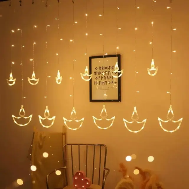 Diya LED Curtain Diya Shaped Lights with 8 Flashing Modes, Warm YellowColor, 2.5 m 12 Diyas Hanging Decoration/Diwali Lights @ ₹239 - Buy Online at CityMall