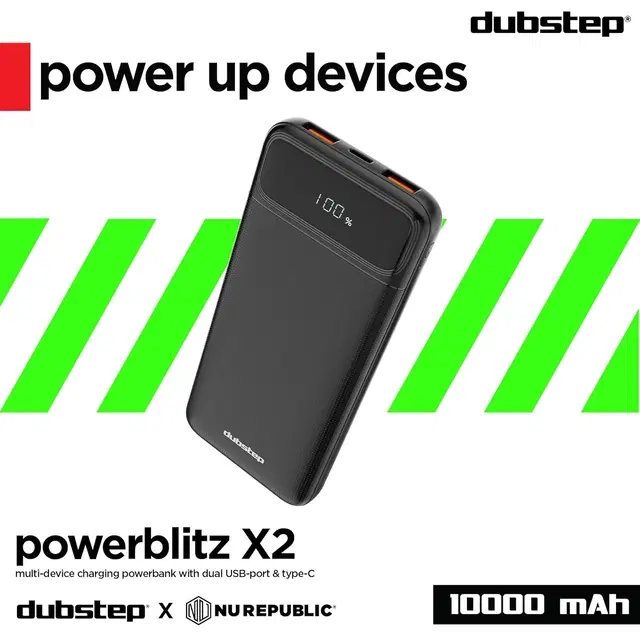 Dubstep powerblitz x2 10,000 mah with dual usb port & type-c multi device charging powerbank (black) - Buy Online at CityMall