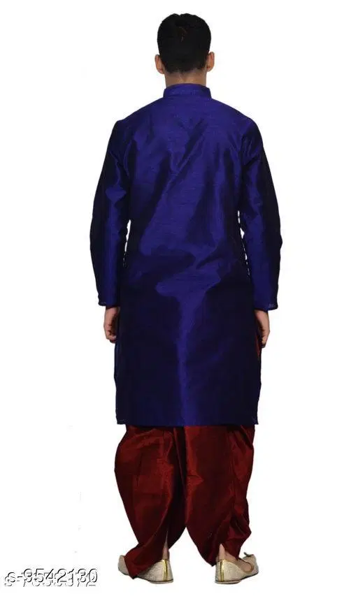 Dupion Silk Solid Kurta with Dhoti for Men (Navy Blue & Maroon, M)