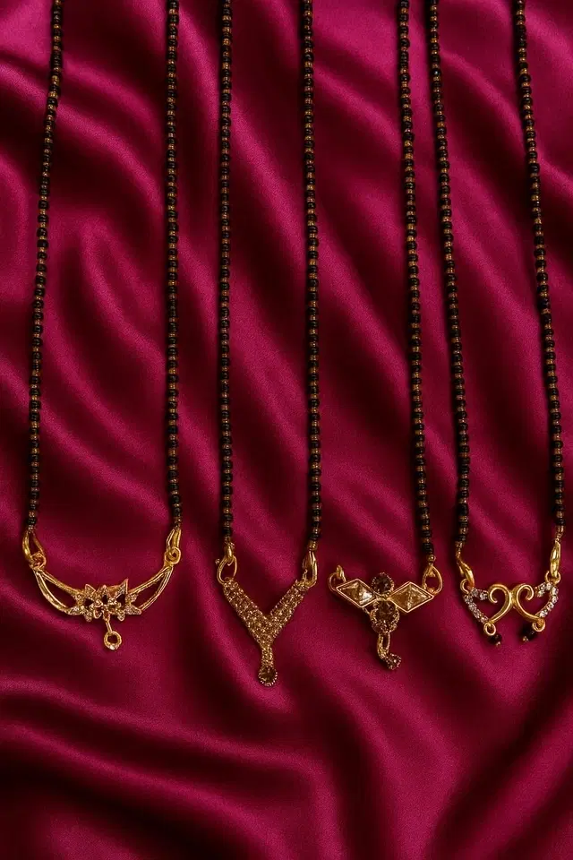 Elegant Gold-Plated Mangalsutras with Black Beaded Chains for Women, Pack of 4 - Buy Online at CityMall