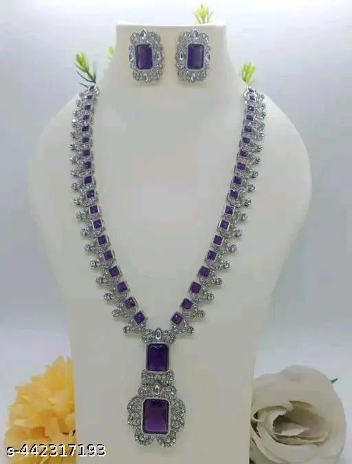 Name: Elegant Silver-Plated Long Necklace and Earrings Set for Women | Wedding Necklace Set | Party Wear Jewellery | Jewellery for Women | Wedding Jewellery |