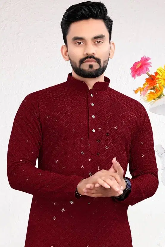 Cotton Blend Shiny Sequin Kurta for Men, Maroon (L) - Buy Online at CityMall