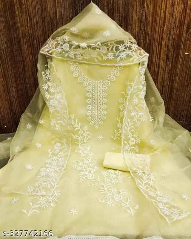 Embroidered Unstitched Suit for Women (Yellow, 2.25 m) @ ₹569 - Buy Online at CityMall