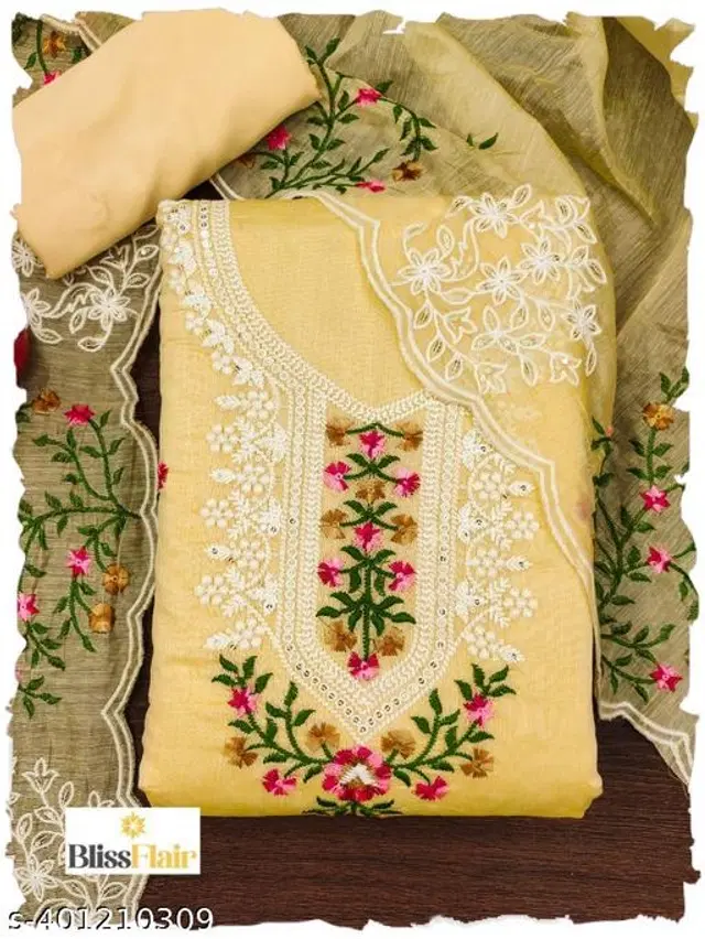 Embroidered Unstitched Suit for Women (Yellow, 2.25 m) - Buy Online at CityMall