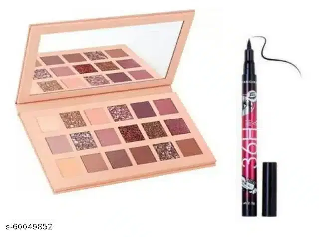 NUDE Eye shadow Palette & 36H Deep Black Liquid Eyeliner(PACK OF 2 ITEMS)