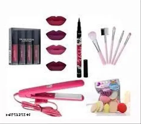 Product Name: Premium combo of lipstick and eyeliner with high quality brush set of 5 and high quality straightener with blender