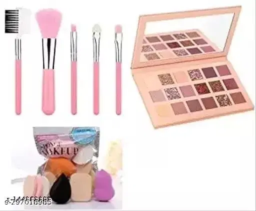 Nude Eyeshadow+ 5 Pink Makeup Brush+6 pcs blender puff(3 Item set)