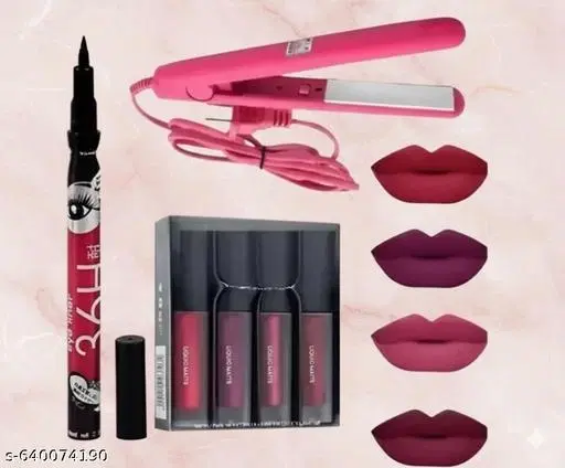 Product Name: High quality premium combo Hair straitner Herbrogenic lipistic new edition 4in1 combo with 1 eyeliner
