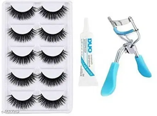 False 5 Pieces Eyelashes with Eyelash Glue and Eyelash Curler With Black Eyebrow Free