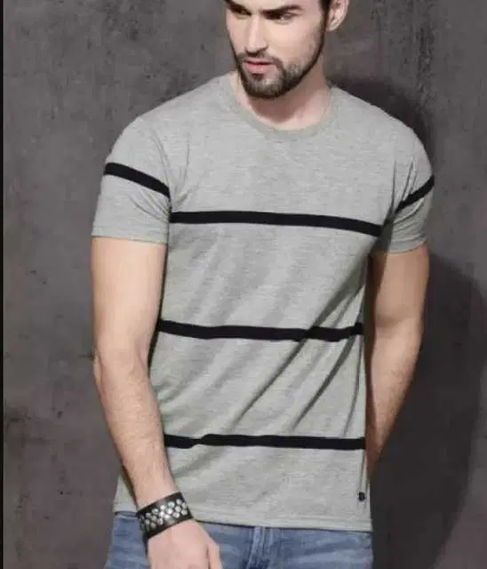 Fancy Micro Striped Half Sleeves T-Shirt For Men (Grey, XL) - Buy Online at CityMall
