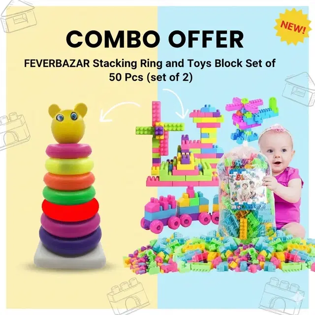 FEVERBAZAR Stacking Ring and Toys Block Set of 50 Pcs