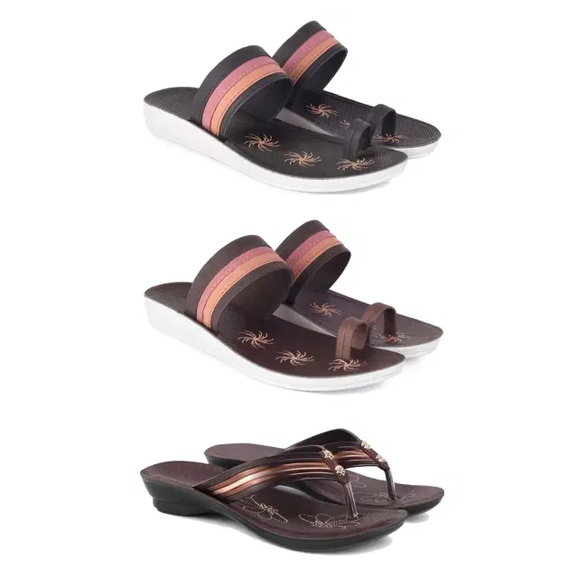 Flats for Women, Set of 3 (Multicolor, 5)