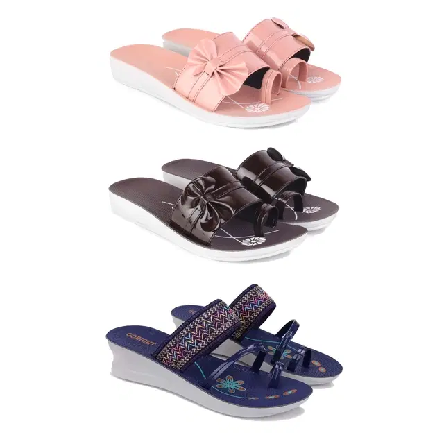 Flats for Women, Set of 3 (Multicolor, 6)