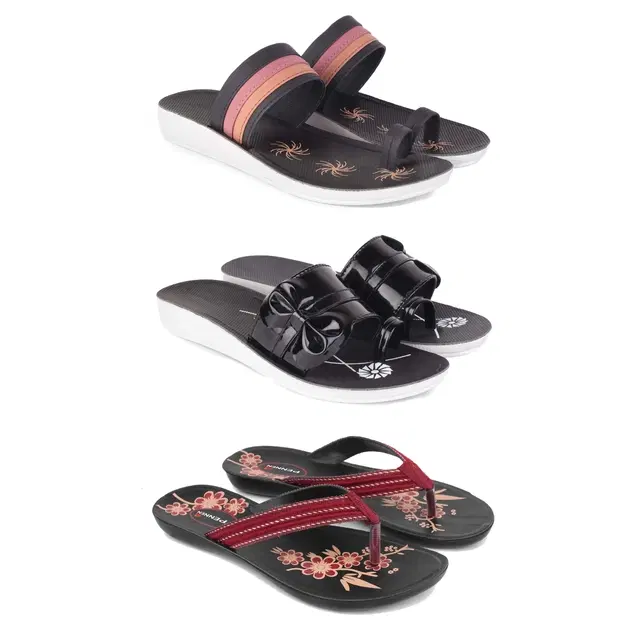 Flats for Women, Set of 3 (Multicolor, 7)