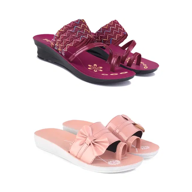 Flats for Women, Set of 2 (Multicolor, 8)