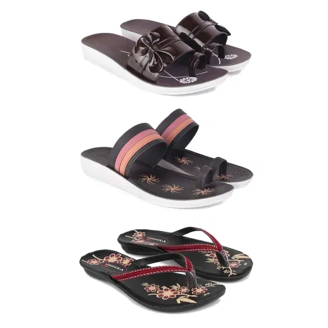 Flats for Women, Set of 3 (Multicolor, 8)