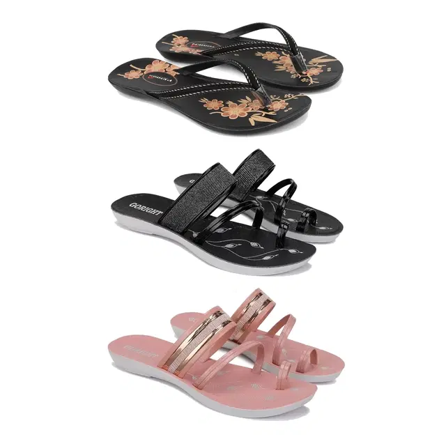 Flats for Women, Set of 3 (Multicolor, 8)