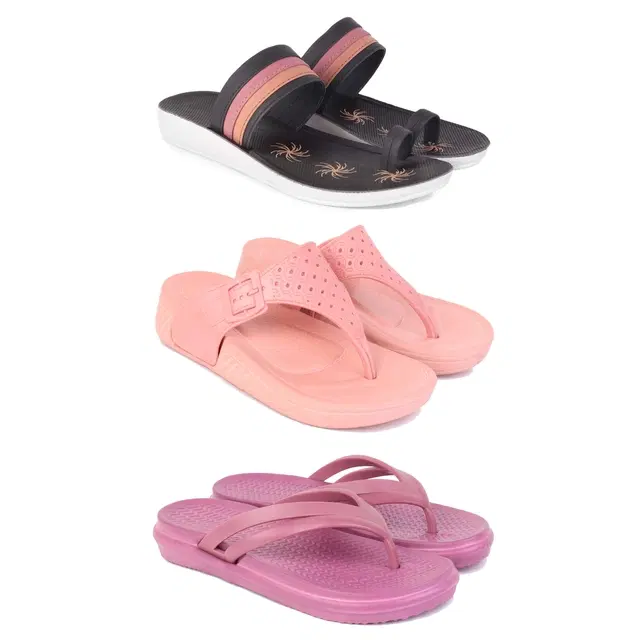 Flats for Women, Set of 3 (Multicolor, 8)