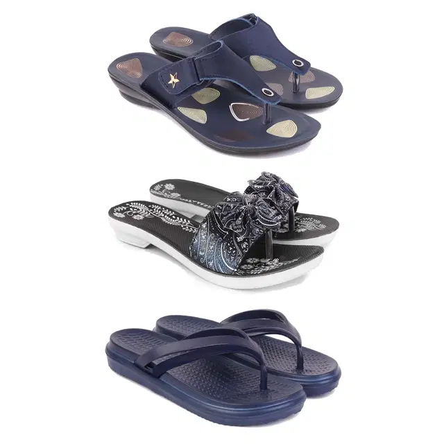 Flats for Women, Set of 3 (Multicolor, 8)