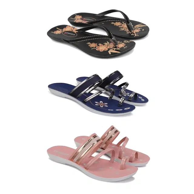 Flats for Women, Set of 3 (Multicolor, 8)