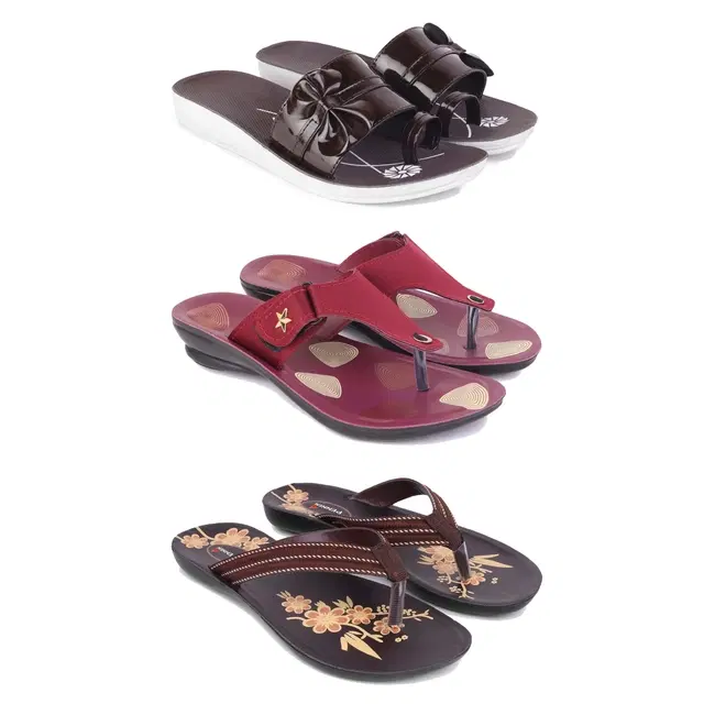 Flats for Women, Set of 3 (Multicolor, 8)