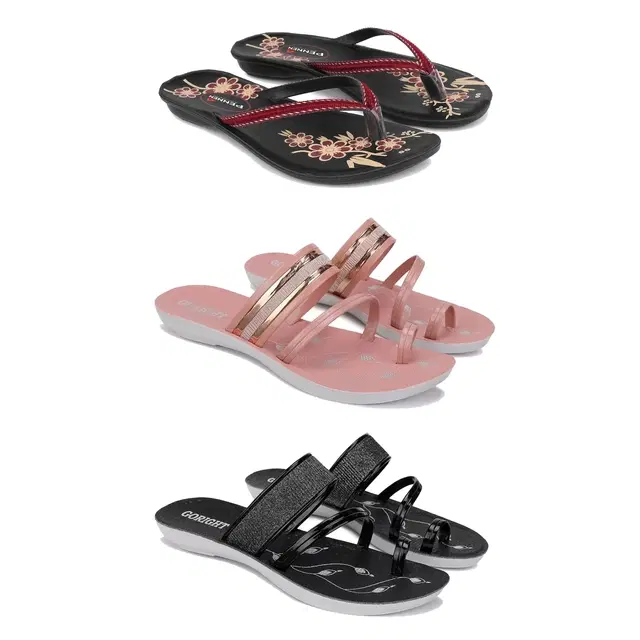 Flats for Women, Set of 3 (Multicolor, 8)