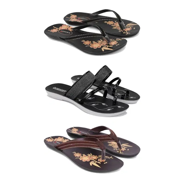 Flats for Women, Set of 3 (Multicolor, 8)