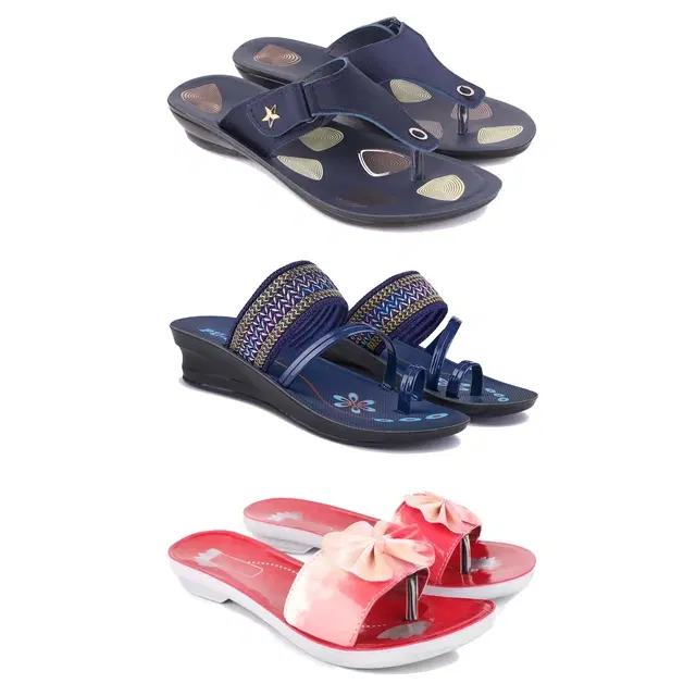Flats for Women, Set of 3 (Multicolor, 8)