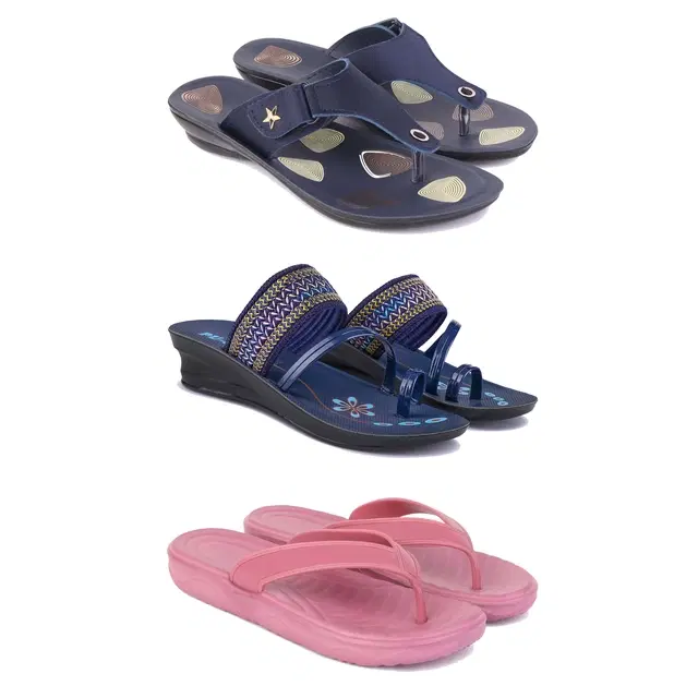 Flats for Women, Set of 3 (Multicolor, 8)