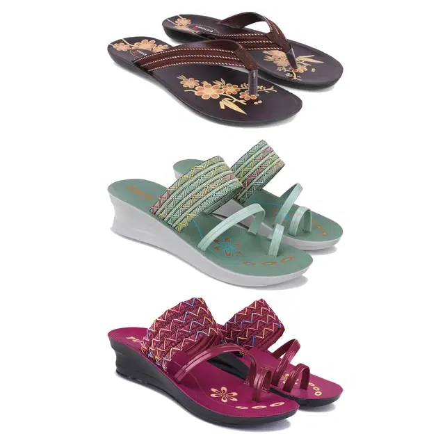 Flats with 2 Pairs Heels for Women, Set of 3 (Multicolor, 8)