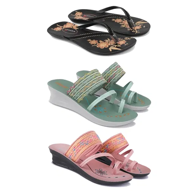 Flats with 2 Pairs Heels for Women, Set of 3 (Multicolor, 8)