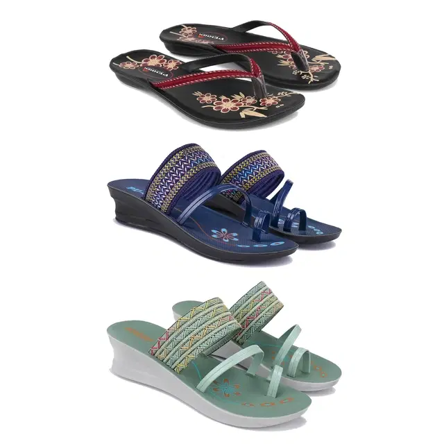 Flats with 2 Pairs Heels for Women, Set of 3 (Multicolor, 8)