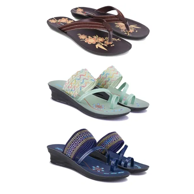 Flats with 2 Pairs Heels for Women, Set of 3 (Multicolor, 8)