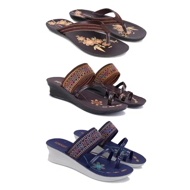 Flats with 2 Pairs Heels for Women, Set of 3 (Multicolor, 8)