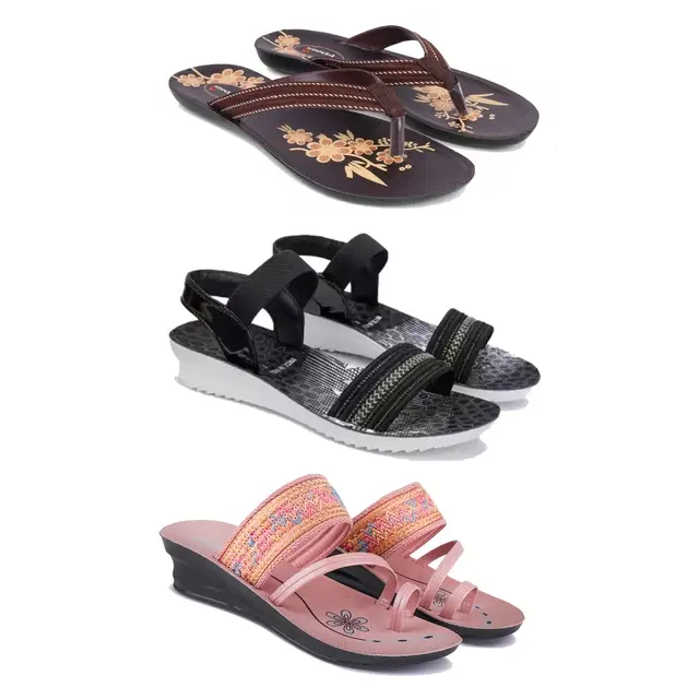 Flats with Heels & Sandals for Women, Set of 3 (Multicolor, 8)
