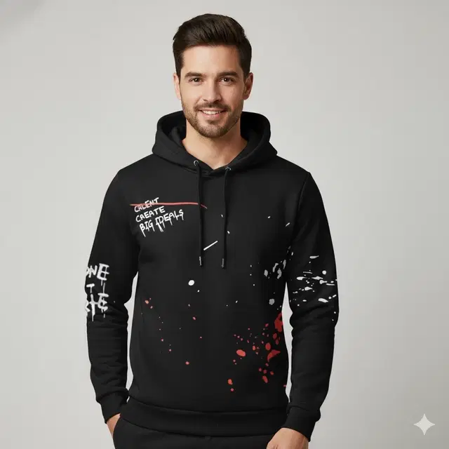 Fleece Printed Hoodie for Men, Black (XL) - Buy Online at CityMall