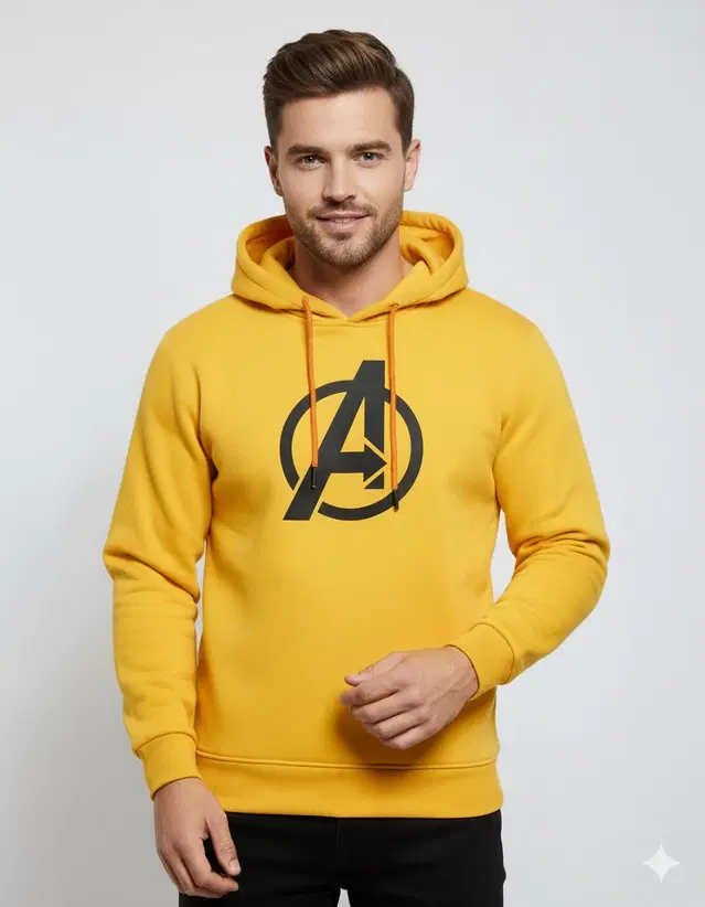 Fleece Printed Hoodie for Men, Yellow (L) - Buy Online at CityMall