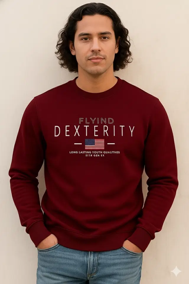 Fleece Printed Sweatshirt for Men, Maroon (XL) - Buy Online at CityMall