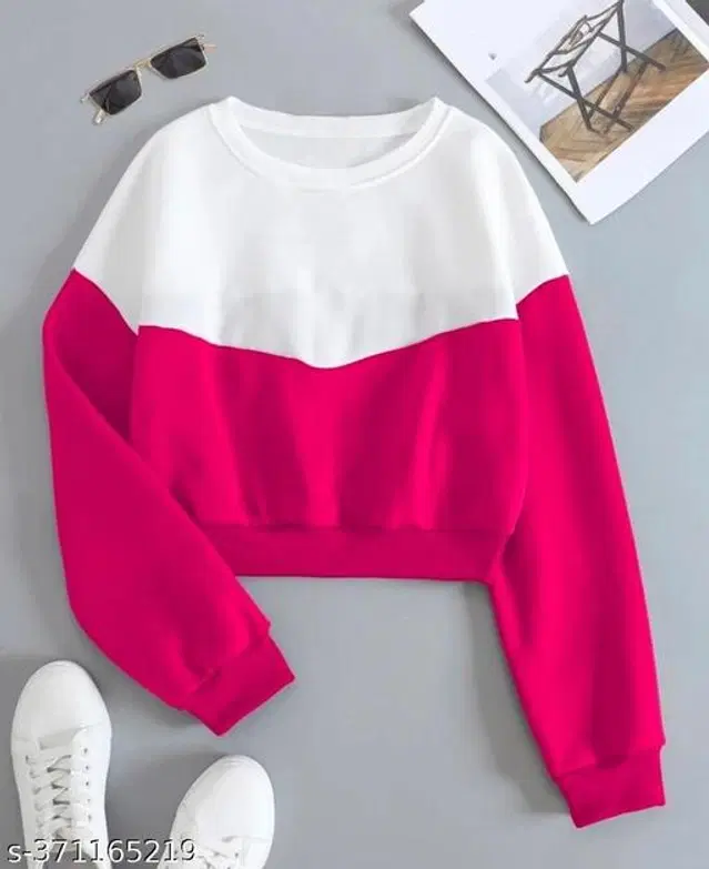 Fleece Sweatshirt for Women (White & Pink, XL) @ ₹385 - Buy Online at CityMall