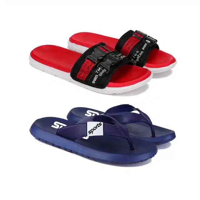 Flip Flops for Men, Pack of 2 (Multicolour, 10)