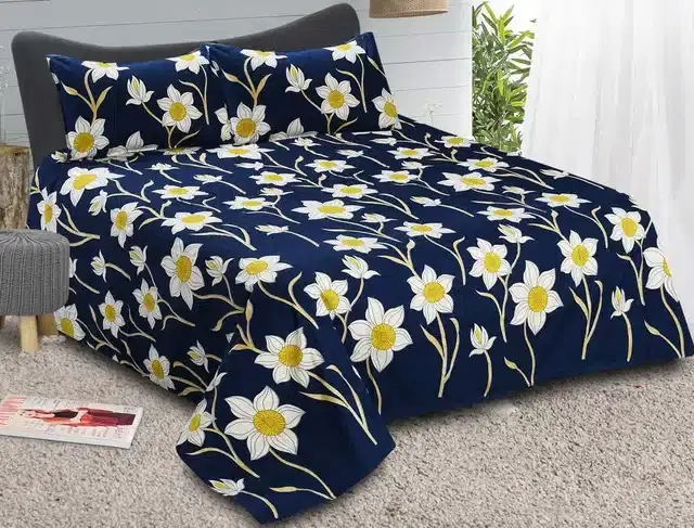 1 Double Bedsheet size 85 inch length and 85 inch width 2 pillow covers size 17 inch width and 27 inch length