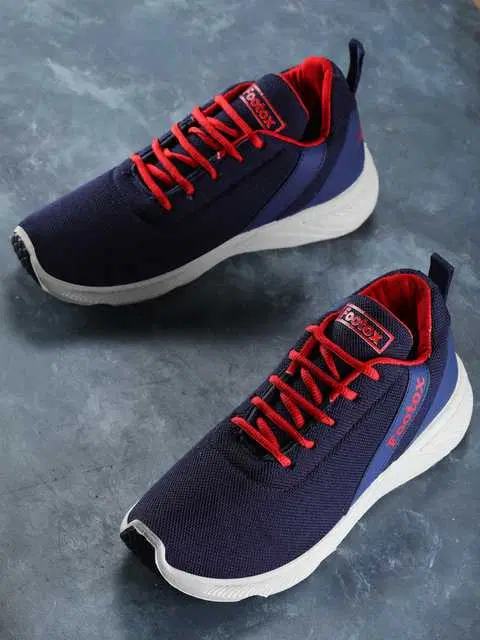 Footox Stylish Mens Casual Shoes (Navy Blue & Red, 12) (F-1576)