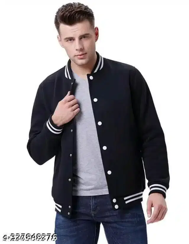 Name: fabulous solid full sleeve 100% fleece varsity jacket Fabric: Fleece Sleeve Length: Long Sleeves Pattern: Solid Net Quantity (N): 1 Sizes: S (Length Size: 26 in) M (Length Size: 27 in) L (Length Size: 27 in) XL (Length Size: 28 in) XXL (Length Size: 28 in)