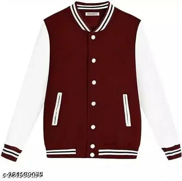 Name: Stylish solid unisex varsity jacket Fabric: Fleece Sleeve Length: Long Sleeves Pattern: Colorblocked Net Quantity (N): 1 Sizes: S (Length Size: 26 in) M (Length Size: 27 in) L (Length Size: 27 in) XL (Length Size: 28 in) XXL (Length Size: 28 in)