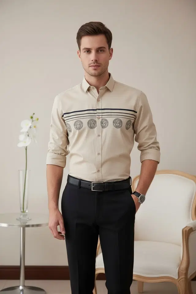 Full Sleeves Printed Shirt For Men, Beige (M) - Buy Online at CityMall